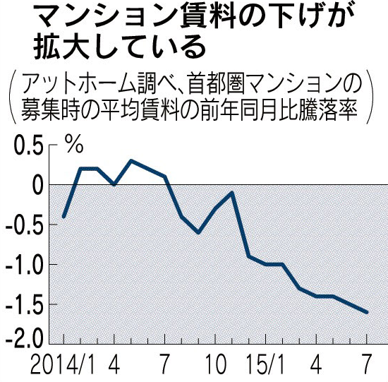 マンション賃料の下げ拡大