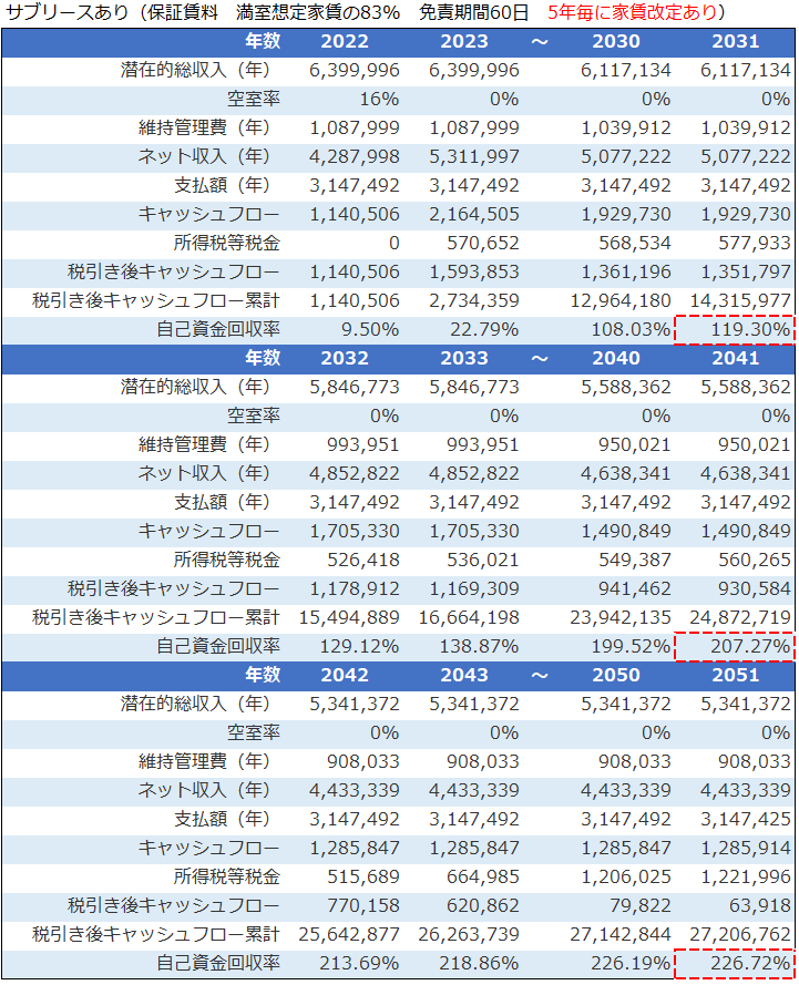 サブリース契約物件_満室想定家賃見直しの不動産投資シミュレーション結果