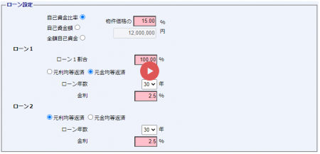 ローン設定画面
