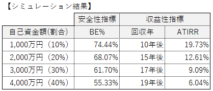 不動産投資の自己資金を決定するための不動産投資シミュレーション結果
