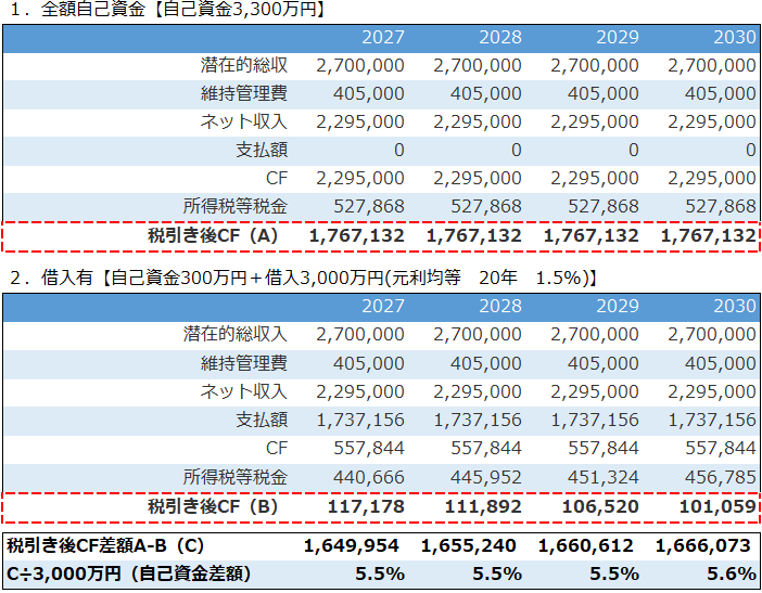 不動産投資_現金派_借入派比較_キャッシュフロー結果