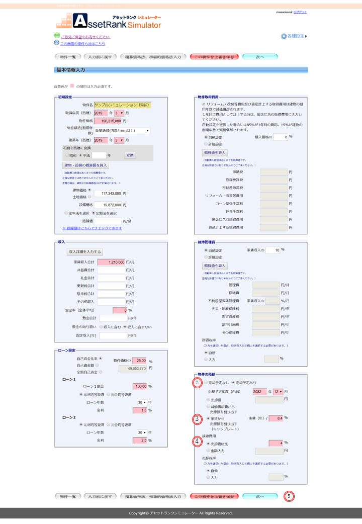 基本情報入力(売却分析)