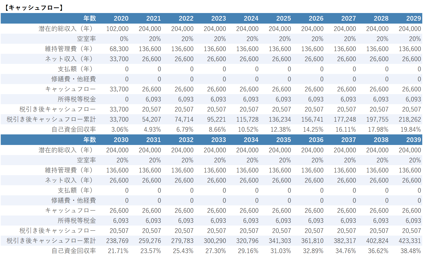 中古木造と新築木造のキャッシュフロー分析