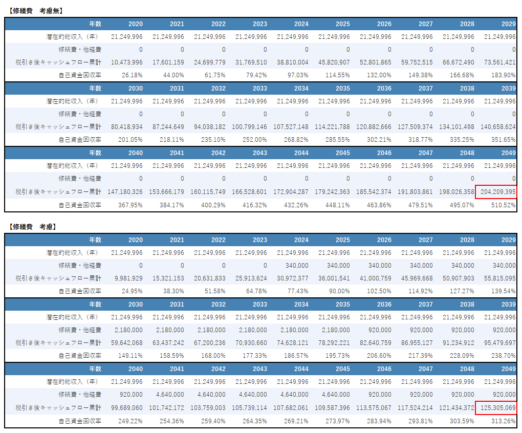 RC物件の30年分の修繕費を考慮したシミュレーション